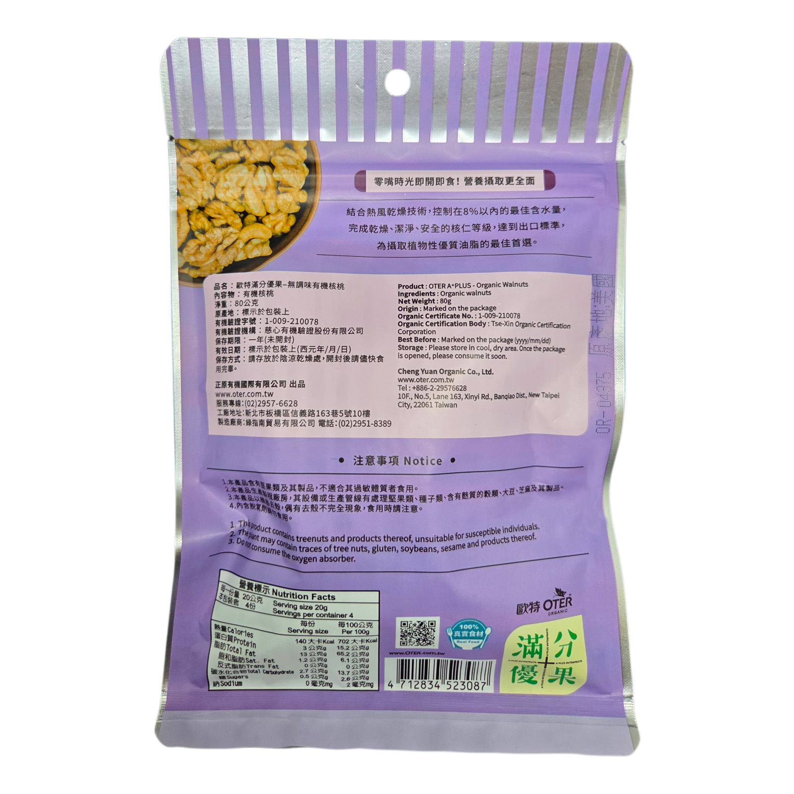Oter Organic Walnuts 歐特無調味有機核桃 80g